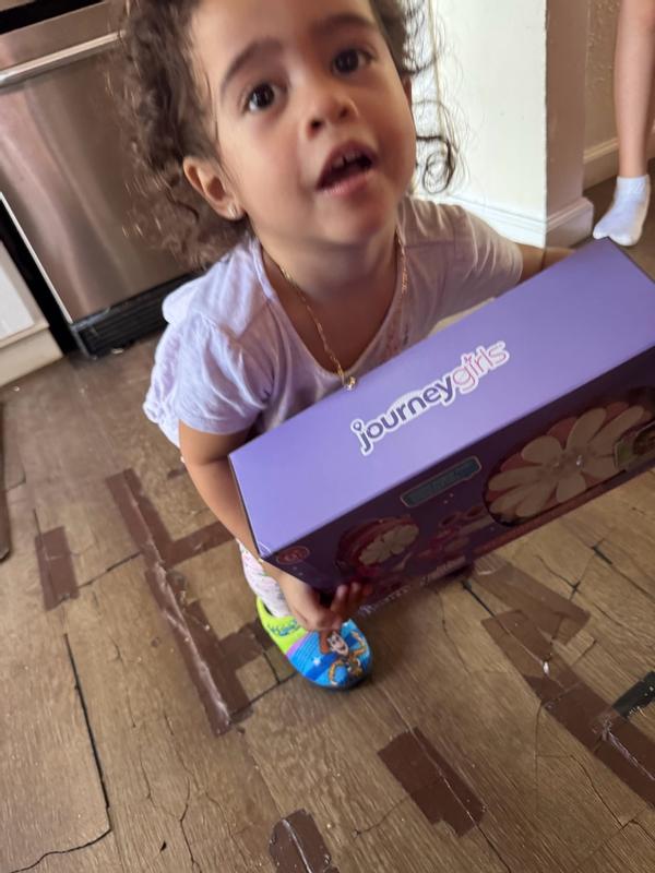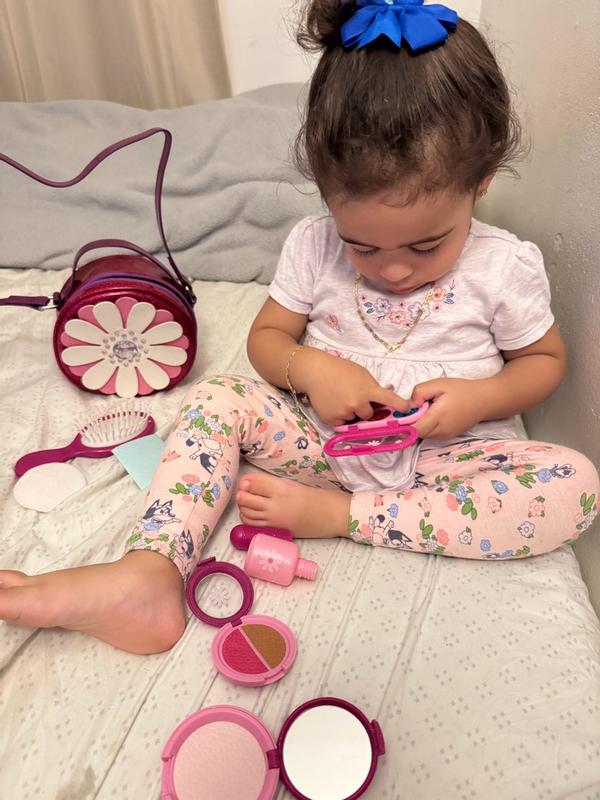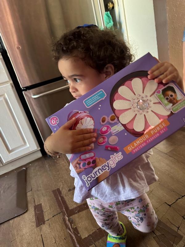 This is the Journey Girls Glamour Purse Set Daisy, and my daughter abbsolutely loves it! Even though it says ages 6+, I find it’s also perfect for younger girls when supervised. The set comes with everything for pretend play: a purse, sunglasses, a brush, makeup pieces, lipstick, and nail polish. The “makeup” looks and feels real, but doesn’t leave any mess - which is such a huge plus! My daughter pretends to do her own makeup, brushes her doll’s hair, and paints nails, all while copying what she sees mom do. The purse is roomy enough to fit all the pieces, and the sunglasses even have a UV sticker, so they can be worn outside too. It’s such a fun way to spark imagination, encourage role play, and let kids feel “grown-up” in a safe way. We’re very happy with this set - it’s stylish, well-made, and keeps my little one entertained for a long time. Definitely a great gift idea!