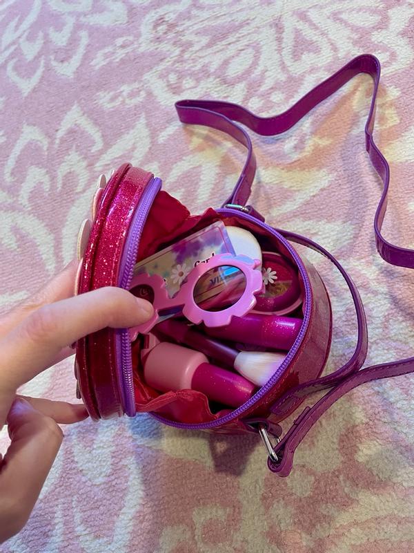 This little purse and accessories are absolutely adorable! It is so sparkly and feels like good quality. The only downside is the strap is torn from being packaged so tightly wound. Everything fits inside the purse which is fantastic! The age on the packaging suggests 6+, but I definitely see it as a 3+ toy.