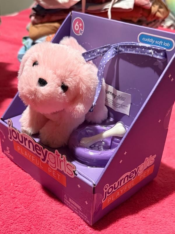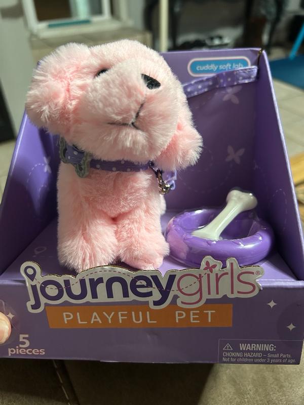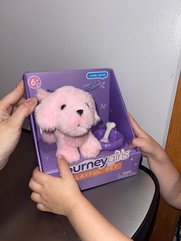This Journey girls playful pet set is super cute! It comes in an easy to open package. It comes with accessories for your pet such as, a collar with leash, bone and food dish. The pink lab puppy is super soft and snuggly! This toy is not for children under 3 years of age. This pet is the perfect size to go along with your 18” doll.