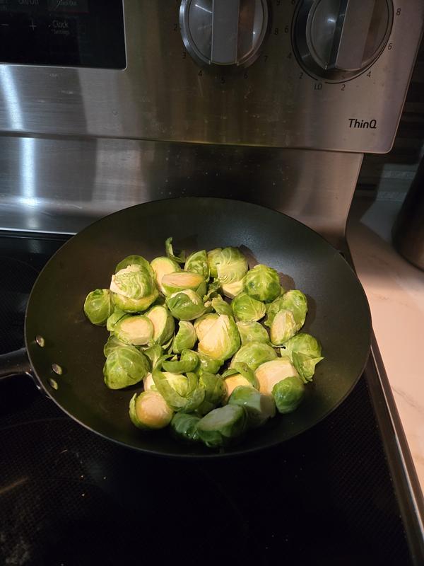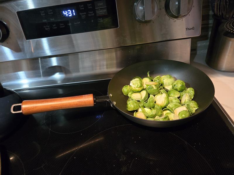 When I first received the product I was worried it would be too small, but it is a perfect size for my family of 2. I made a vegetable stir fry and found the pan distributed heat well, was very easy to clean up and the wooden handle doesn’t get hot.