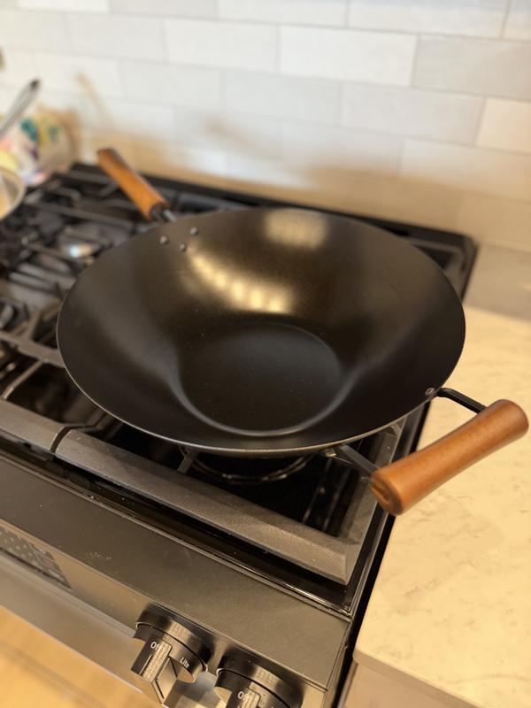 You can’t always tell online in pictures, but I’m happy to report this wok is deep - useful deep. You can toss veggies, stir-fry noodles, or pile in ingredients without worrying about anything flipping out onto the stove. It just makes cooking easier. It also looks really nice. The shape, the finish, the wooden handle —it’s a piece of cookware you don’t mind leaving out because it actually makes your kitchen look better. It feels sturdy, heats evenly, and doesn’t scratch or warp, even with regular use. After a bunch of meals, it still looks basically brand new. If you want a wok that’s roomy, looks great, and is built to last, this one’s a great pick.