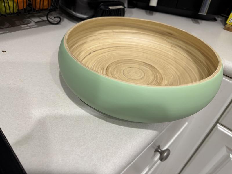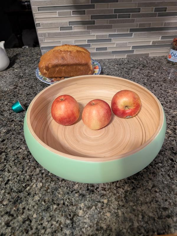 The company was out of stock for the blue bamboo bowl so they sent one in the natural color. It actually looks better with my decor. It is the perfect bowl for fruit. It’s easy to wipe clean and maintain.