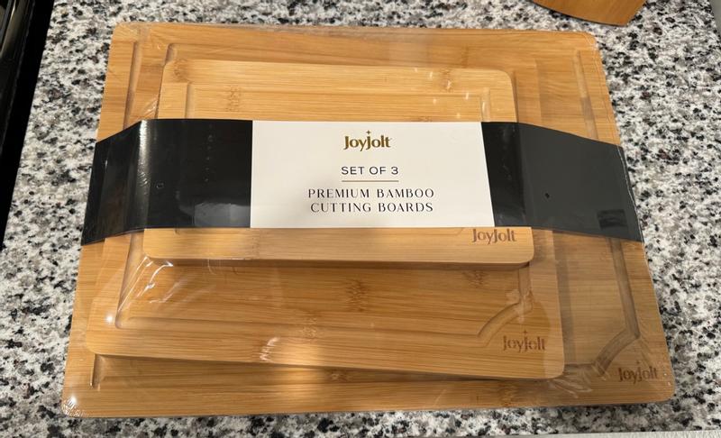 These JoyJolt Kitchen Set of 3 Bamboo Cutting Boards are so nice and have been a fan favorite in our kitchen. I love that you get 3 different sized boards, which allows you to cut and chop on separate boards instead of one. They’re thick and sturdy, holding up just as well as my more expensive/thicker wooden cutting board! Easy to clean and store away. We frequently cook and use them with no complaints so far! Highly recommend this set!