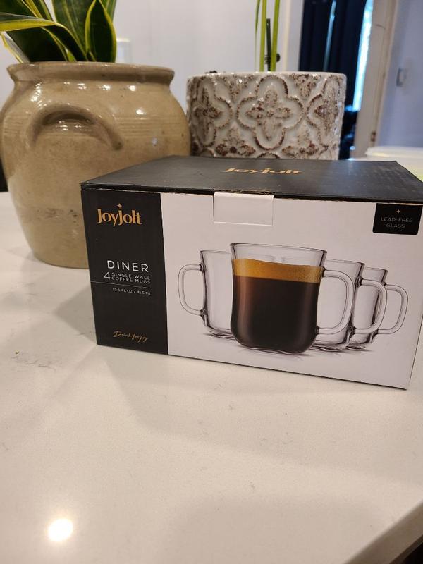 Thank you so much, Influenster and JoyJolt, For sending the diner tea coffee mugs glasses set 15.5 Oz in a set of four for an honest review. I'm very impressed with how high quality these mugs are. They are weighted and feel like a luxury coffee mug. They are dishwasher safe. They give a touch of modern design class to my kitchen. The minimalist clean look goes well with any kitchen decor. These coffee mug sets would make an excellent gift for a newlywed Christmas present or birthday present. They come elegantly packaged in a gorgeous box and individually wrapped with bubble protector. You can depend on these mugs to get to you safely in shipping. They are the perfect size for coffee and tea. I love the ability to see through the glass at your beverage. This will be perfect for two-tone coffee drinks and tea with whipped cream. These would make a perfect addition to any social gathering. I highly recommend them.