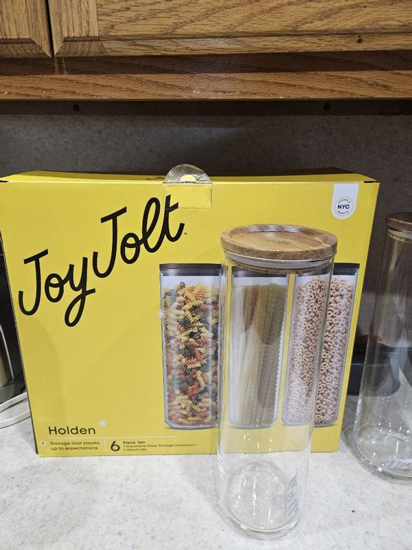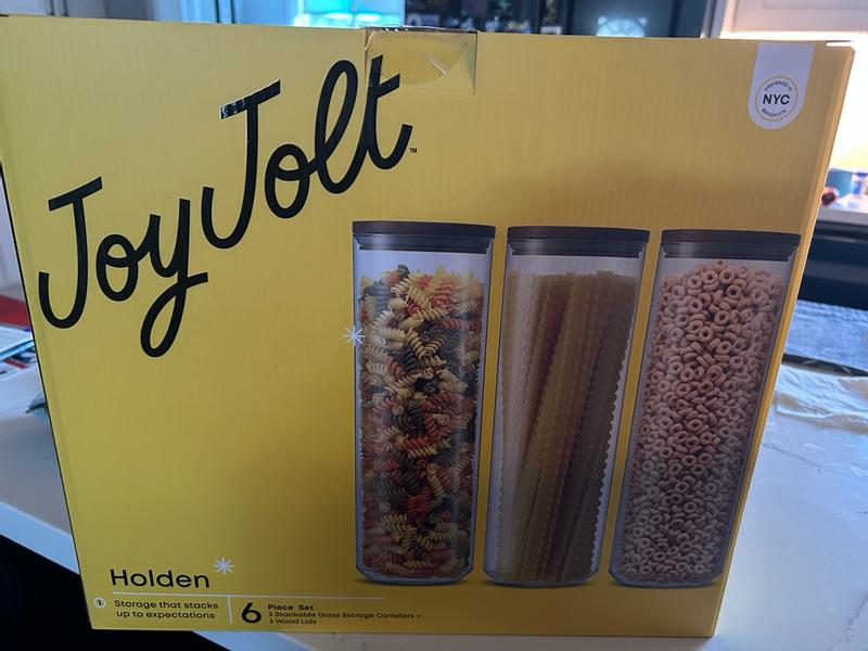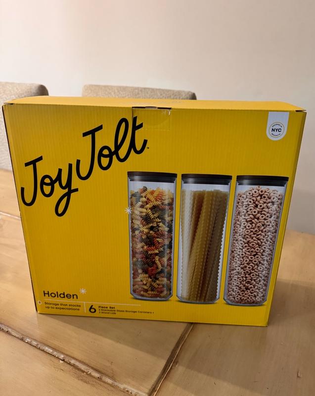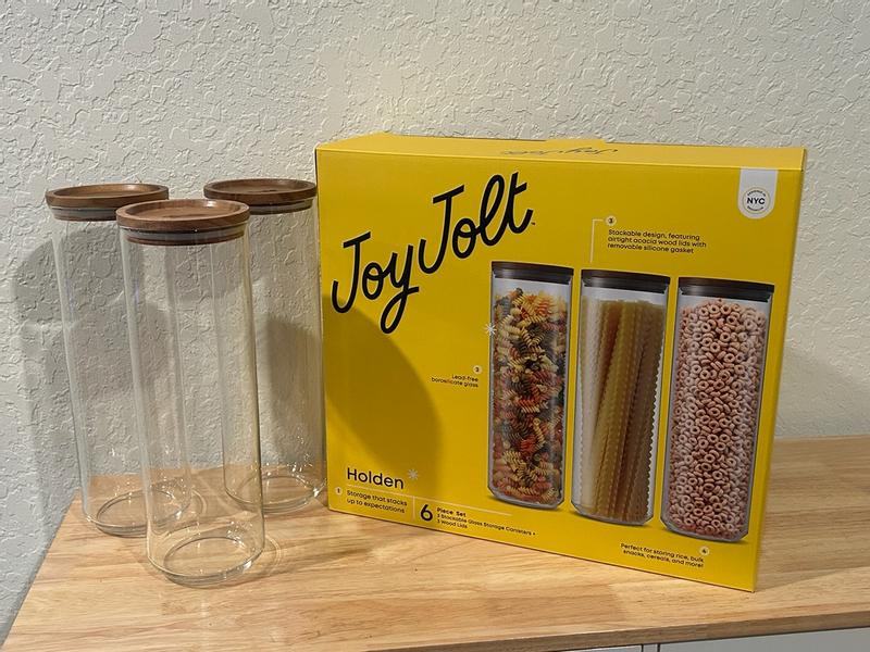 I was excited to unbox these as the box was sturdy and the tape said JoyJolt which excited me as I forgot what I ordered! I was surprised at the size of these as they are tall and hold a lot, but fit perfectly under the counter or in the pantry. I was able to store three pounds of spaghetti with room to spare! I do wish they had some labels as I may forget what's inside, but those can easily be procured. They do feel a little thin so I ended stashing them in my pantry out of reach of little hands.