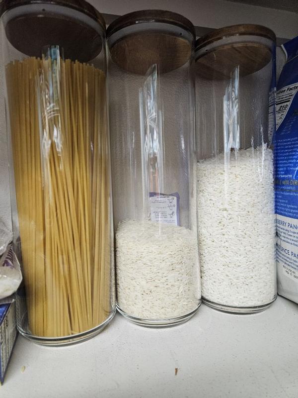 These glass containers are great! They are good quality, heavier than expected, and seem like they will last quite a while. They are tall which is great for pasta and rice, and they are wide enough to easily clean. Highly recommend! This review was part of an incentivized campaign.
