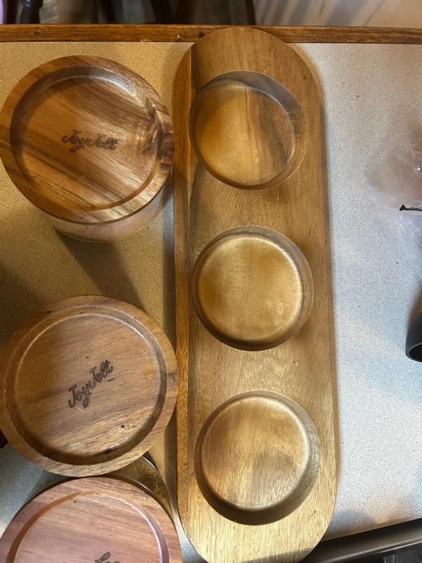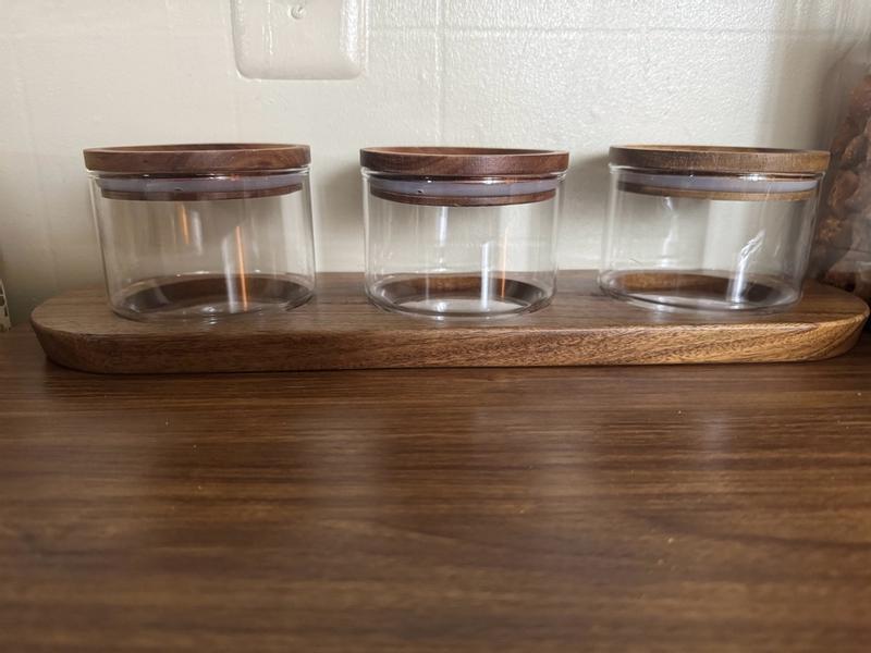 Holden Stackable Glass Storage Canister with Wood Lids and Tray, Set of 3