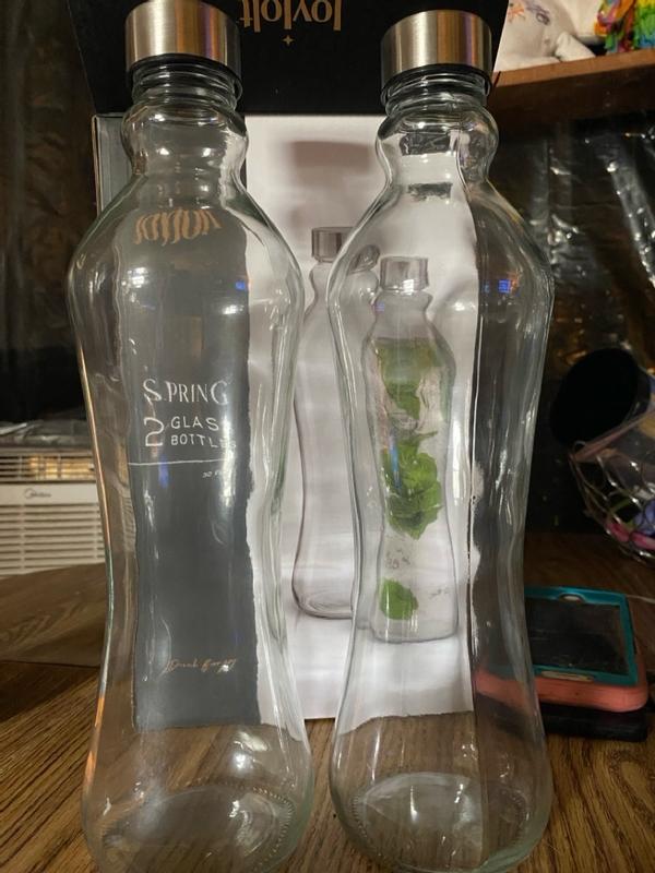 Spring Glass Water Bottles with Stainless Steel Cap, Set of 2