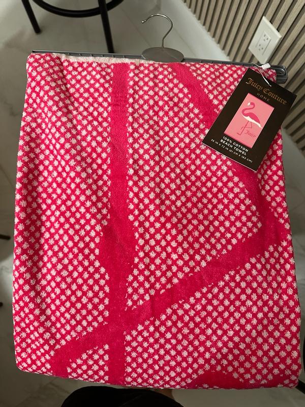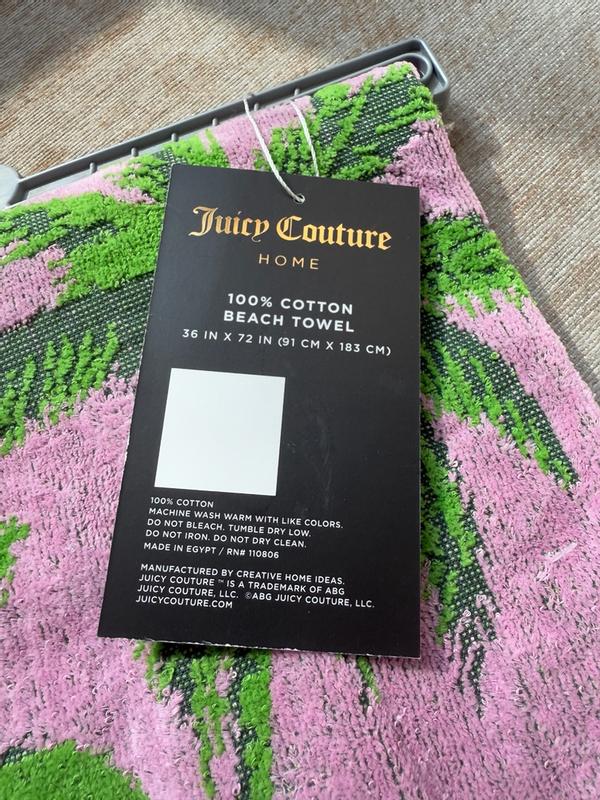 Now I can live my y2k Juicy Couture fantasy! This towel is standard beach towel-sized. The opposite side is a reverse of the pink/green colorway and is just as cute. Its very soft and has good absorption although it doesn’t feel as cozy fluffy as a regular beach towel. It has more of that jc tracksuit terricloth texture.