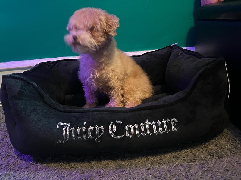 That Juicy Couture cat bed is awesome! So soft and comfy, and it's huge—both my cats snuggle in together. It's super nice and fancy, plus it's really sturdy.