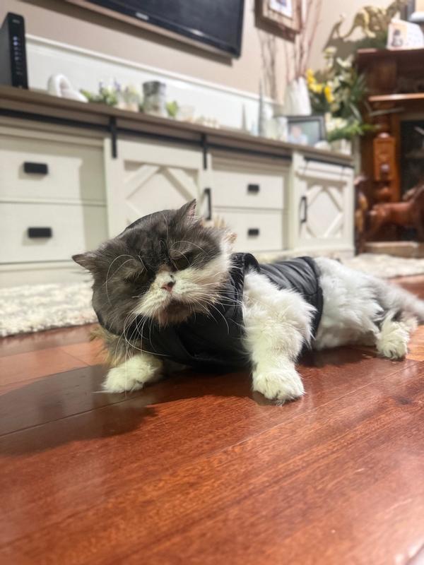 What a beautiful pink puffer coat for my cat! It’s amazing—the material is durable and truly puffy, not just for looks. It even has a little hood, and it doesn’t come undone easily. Super cozy on the inside, and my cat actually loved it! The sizing is perfect for my little one. Perfect mix of style and comfort