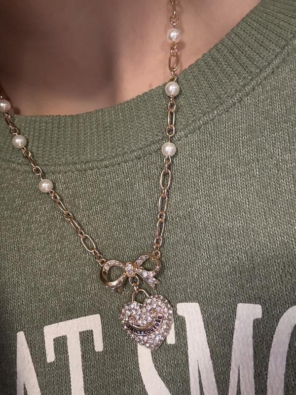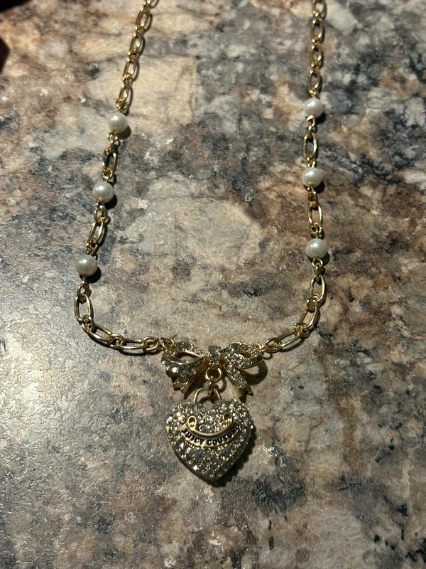 i LOVEEEEEE this necklace. i was bored one day and thought i’d look for some juicy couture stuff at macys and this necklace came up quickly and the second i saw it i bought it i didnt even look at anything else i was so in love with this. its beautiful and is a bit larger than normal necklaces but i honestly love it cause its eye catching. dont even hesitate just get it immediately like i did!!!