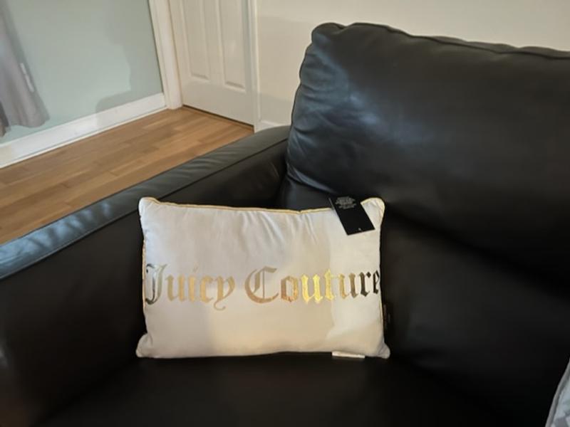 This is a chic accent pillow that goes well with any bedroom or living room decor. The quality of the material and stitching is good. It is soft and the lettering is beautiful. I wouldn't use it to lay or rest on, but If you're looking for a simple and stylish pillow that adds a touch of elegance to your space, I'd highly recommend this Juicy Couture pillow.