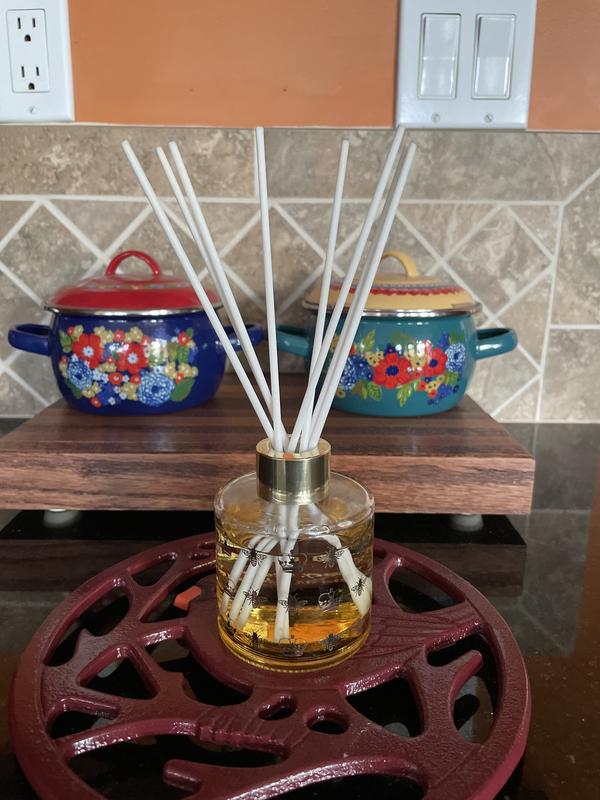 This diffuser has the most beautiful smell to it, honey bee. It’s in a very pretty and looks classy enough. No need to hide this one. Placed it on my nightstand and the fragrance permeated my entire room with a lovely smell. Will order more to place them throughout my house. Very happy.