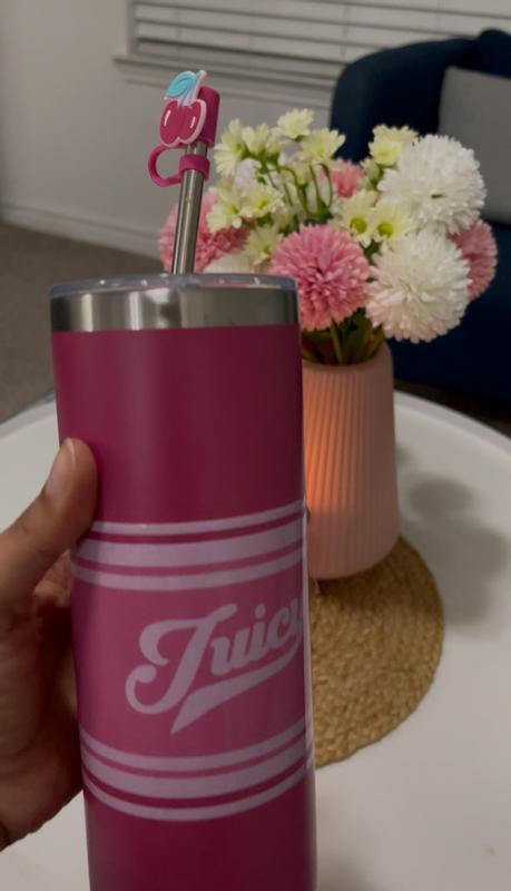 The Juicy Couture Glam Slip 24oz Tumbler is both stylish and practical. The hot pink varsity design stands out, and the stainless steel keeps drinks cold for hours. The straw topper is convenient and leak-resistant. It feels sturdy, fits well in cup holders, and adds a fun pop of glam to everyday hydration.