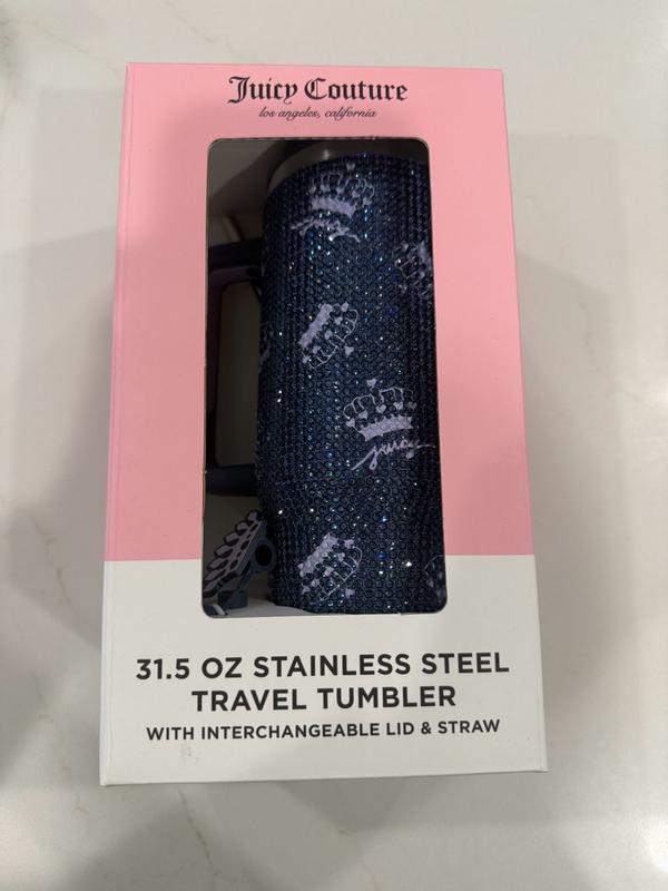 Absolutely love my Juicy Couture Jetsetter 30oz Rhinestone Tumbler! The navy blue crown design is so chic and sparkly — it feels glam every time I grab it. The double-walled stainless steel keeps my drinks perfectly cold for hours, and the handle makes it super easy to carry on the go. The straw topper is such a cute touch! Perfect for daily commutes, errands, or lounging in style.