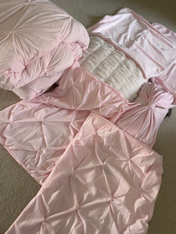 I love how the Juicy Couture Kiss Pleat Plush Comforter feels — super soft and comfy! But my friend who has this set said hers fell apart and looked dingy after the first wash. I’ll see if mine holds up better. Also, I wish the design had more detail to it.