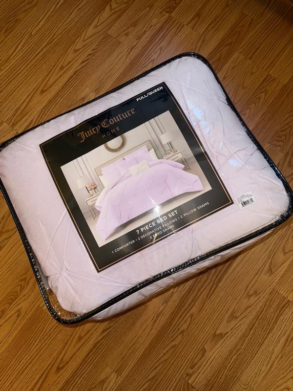 Embrace the ultimate combination of luxury and comfort with the Juicy Couture Kiss Pleat Plush Micromink Lavender Purple Full/Queen Comforter Set. This cozy 7-piece bedding ensemble instantly transforms your bedroom into a chic and stylish retreat. From the plush comforter to the elegantly designed shams and decorative pillows, each piece reflects Juicy Couture's iconic infusion of sophistication and playful irreverence. The comfort and quality are unparalleled, ensuring restful nights wrapped in softness and warmth. Its durability promises long-lasting elegance, maintaining its beautiful design and color wash after wash. The fit is perfect, designed to cater to both full and queen-sized beds effortlessly. Whether you're upgrading your own bedroom or gifting someone special, this comforter set is a testament to impeccable taste and a love for luxurious living.