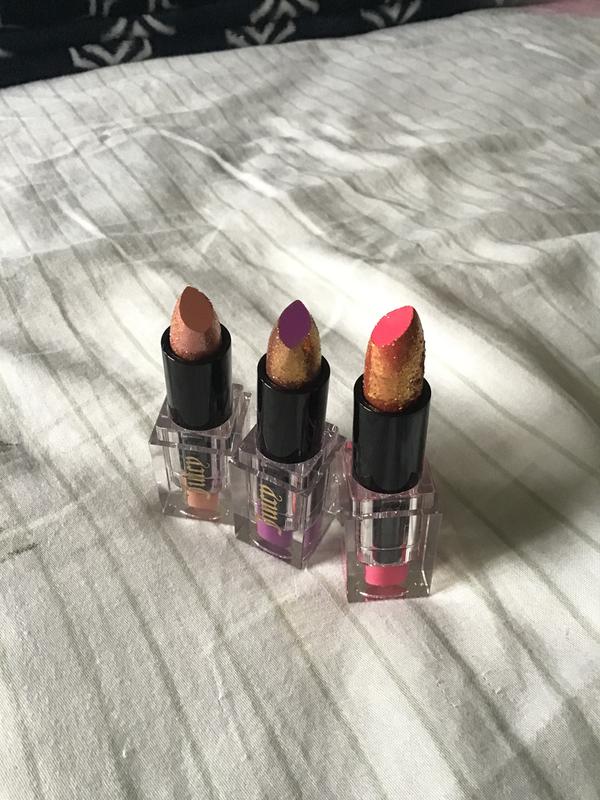 love this lipstick I got the shades UV Darling not my fav as it is purplish ,Happily Ever After which is the perfect nude kinda one which I love as it has added glitter and Not Your Babe (hot pink) and trust me it is a bomb love the way it glides on and adds a little glitter as it goes which is subtle and chic will be buying soon as I want to try the other shades.I received free products in exchange for my honest review.