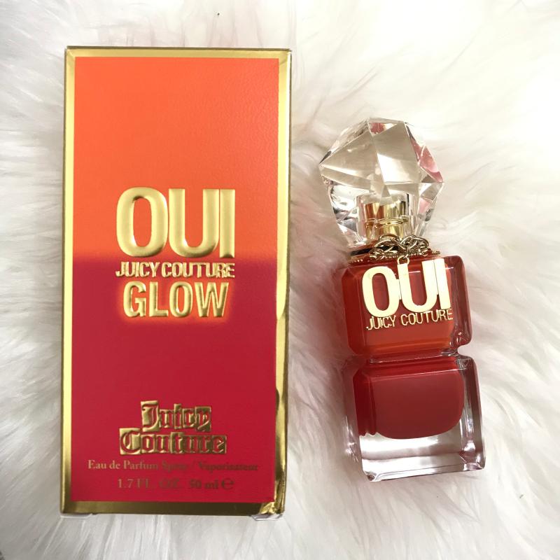 Unstoppable and infectious, Juicy Couture Oui Glow is inspired by the power of the inner and outer glow that all Oui girls possess. This illuminating fragrance adds an additional layer of addiction to her already provocative personality and amplifies her edgy yet playful appeal. Energetic and spirited, Juicy Couture Oui Glow begins with the juicy Brazilian orange and delicious raspberry that adds a twist of freshness. The heart comes through with luminous jasmine sambac and zesty pink pepper. The finish of warm vanilla bean and musk creates an ultimate addictive signature. Get ready to set the world aglow and just say Oui! Spray it on pulse point areas where your skin is the thinnest: wrist, neck, behind ear, inside elbow and behind knee.