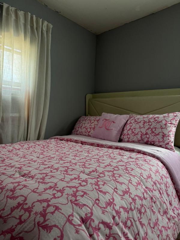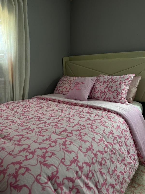 I absolutely love this Juicy Couture bed set! The design is so girly and chic, instantly adding a touch of glamour to my bedroom. The fabric feels incredibly soft and luxurious, making my bed the perfect place to relax after a long day. The quality is top-notch, and the set has held up beautifully after multiple washes. The whole set is so pretty, it's such a dream to sleep in! I highly recommend it to any Juicy Couture fan or anyone looking to add a touch of fun and flair to their bedroom décor!