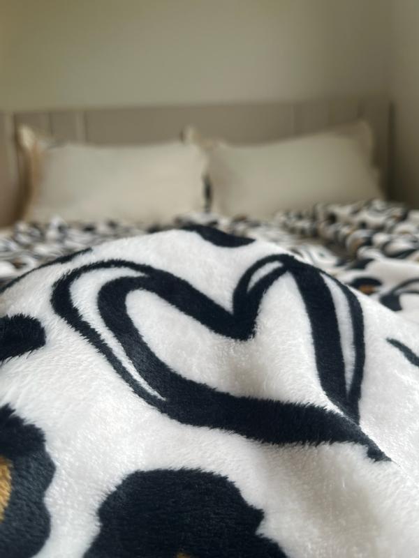 I really like this blanket. It’s super soft and not heavy at all. The design is really cute and I was happy with what I got even though I couldn’t see the picture before it came. I use it on my bed and it covers my whole body, it’s not small at all. It also washed really well and stayed nice. I would definitely recommend it because it’s soft, cute, and the right size.