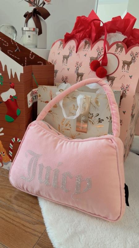 I absolutely love this purse pillow. It's so pretty and soft perfect addition to my collection. I love the design. It's gorgeous. I also love that. It has rhinestones for the juicy couture design, and the zipper also has the juicy couture design!!!
