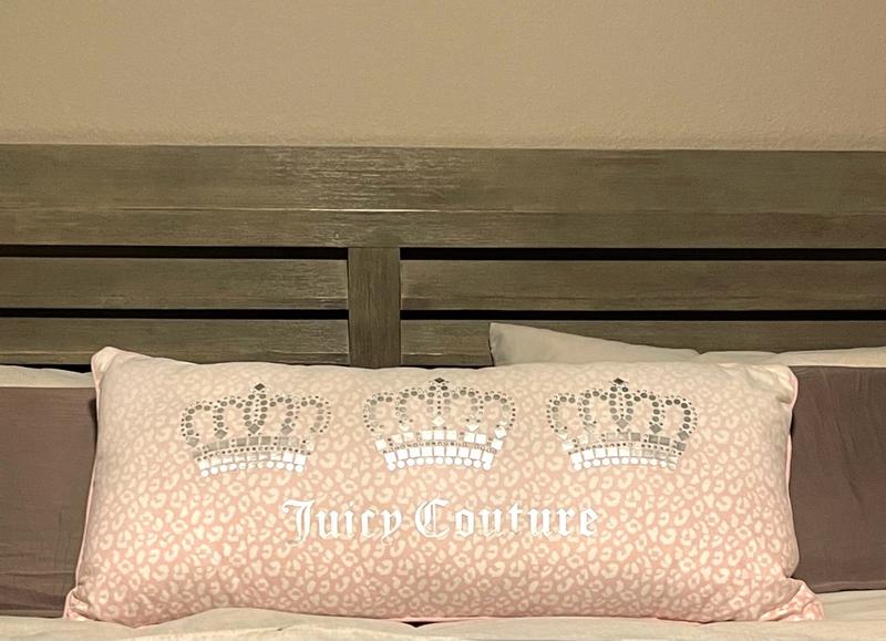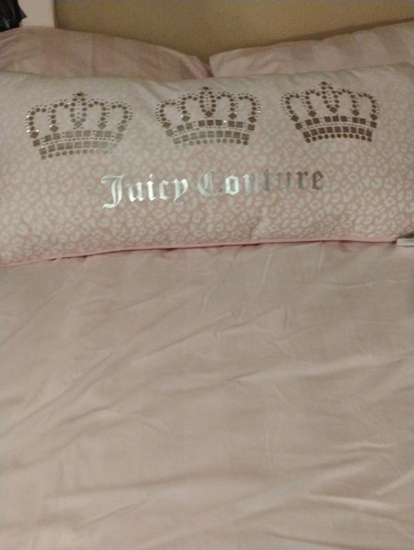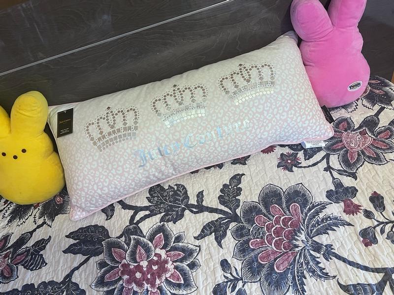 This Juicy Couture Pillow is so pretty and fluffy! It's so comfortable to lay on and very durable! I love the decor on the pillow and it looks like it'll be very easy to wash!