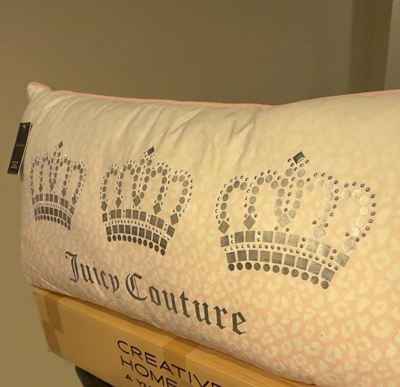 The Juicy Couture Royal Crowns Pillow totally surprised me — it’s even prettier in person. The light pink leopard print gives that chic, feminine vibe, and the embroidered crown adds a little royal glam without being “too much.” The fabric feels soft and plush, and the size (16”×36”) is perfect for layering — it works beautifully on my bed or sofa. It’s more of a decor piece than a “sleeping” pillow, but it instantly makes the room feel elevated and cozy at the same time. If you love stylish home accents that stand out but still match your everyday décor, this one’s a must. My rating: 9/10 — beautiful quality, aesthetic design, and that signature Juicy charm!