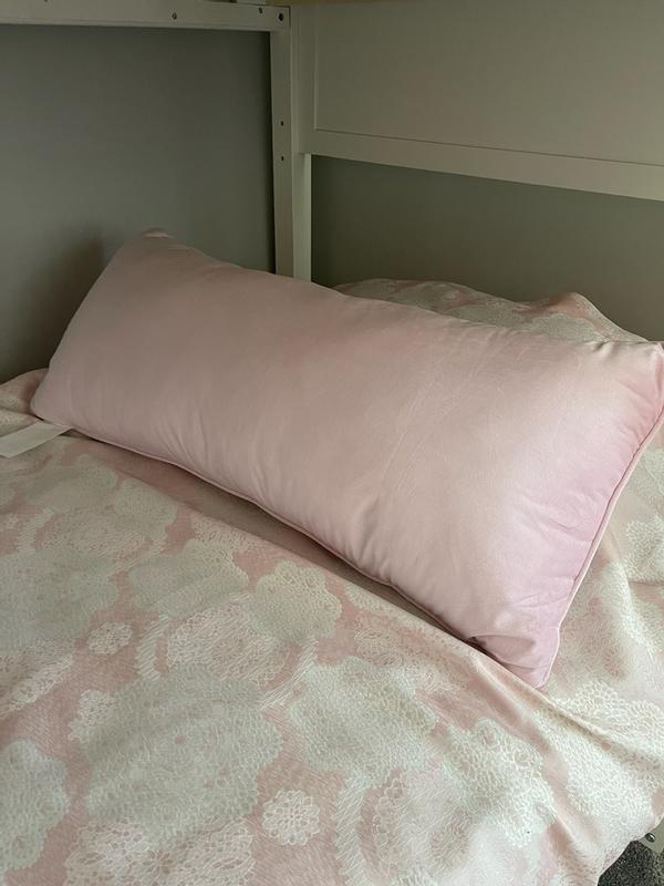 This pillow is adorable and adds such a fun touch to my space. The light pink design is super cute and the size is perfect . nice and long exactly what I wanted. It makes a great statement piece and really elevates the look of the room. Overall a stylish and cozy addition to the house!