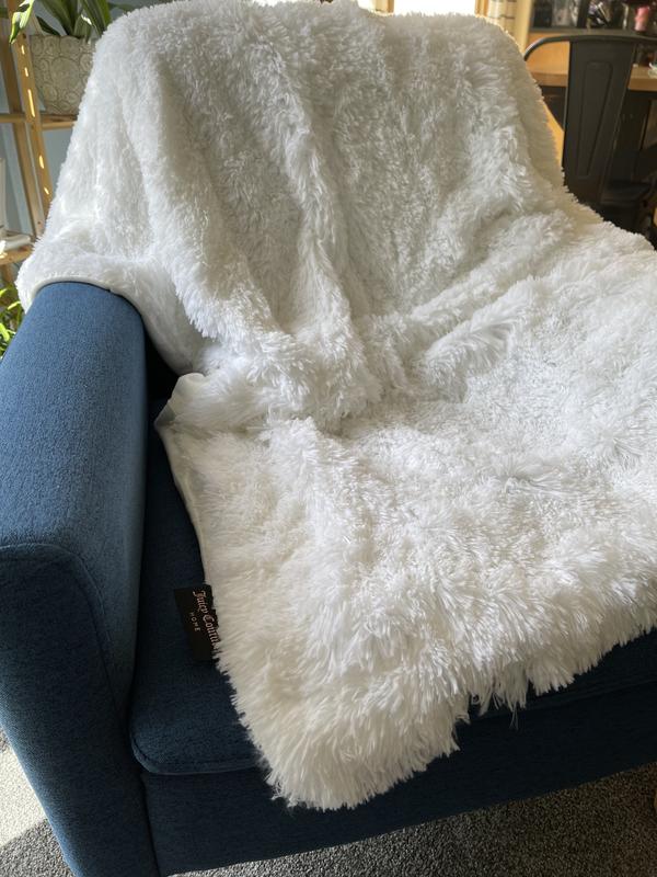 The Juicy Couture Shaggy Faux Fur Throw in Pink Tie-Dye is so cute and oh so soft. It is a nice heavy thick throw, perfect for the cold blustery days. The one downside is that it is spot clean only.