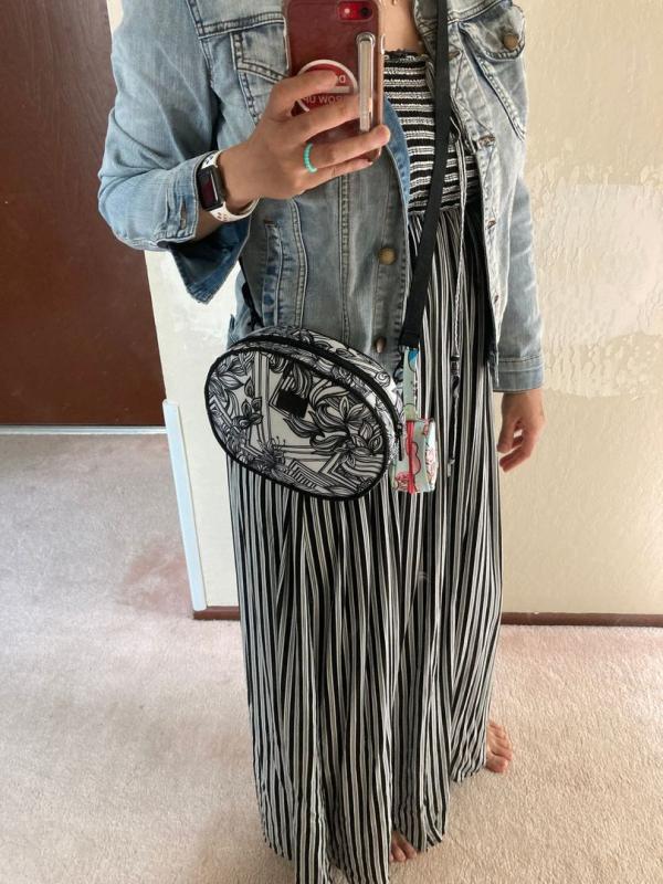Love how roomy it is for quick errands. The print is beautiful and easy to match