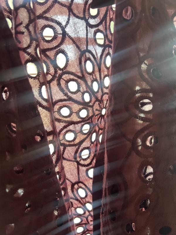 Eyelet openings are huge and there’s a small spaghetti strap straight line mini slip under. It’s much tighter than it appears. It was unfortunately not my style.