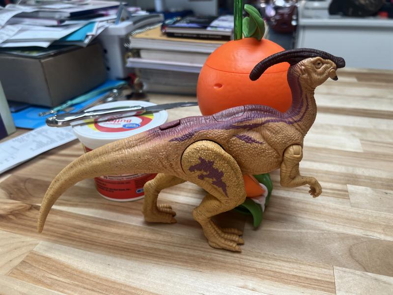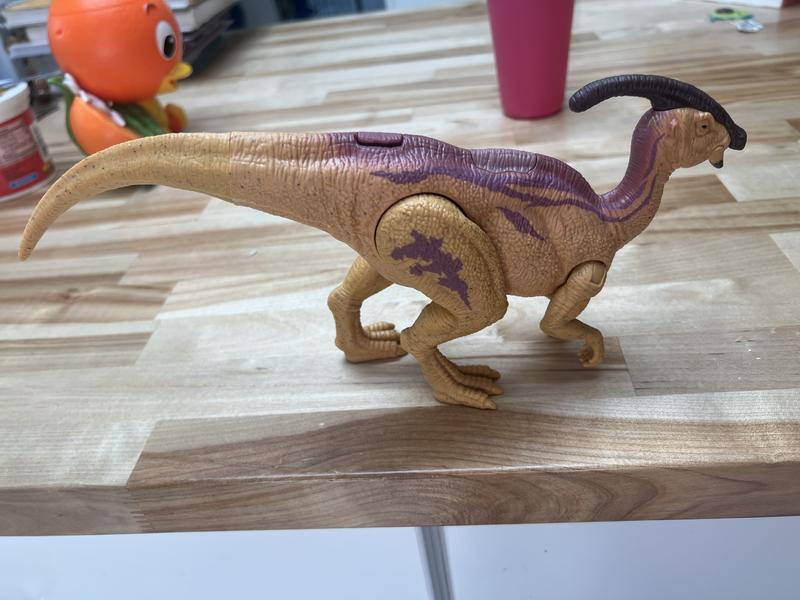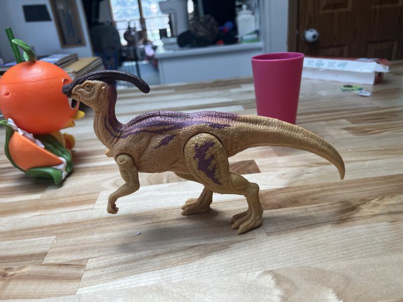 We received the Parasaurolophus Dinosaur Action figure for my dino loving son. He has been obsessed with Dinosaurs from a very young age. It can be difficult to find dinosaur action figures for the lesser popular dinosaurs. The Jurassic World line has done a great job of including many different dinosaurs. This Parasaurolophus is a great example of that. My son loves that he can add many different dinosaurs to his every growing set. This action figure has realistic sounds and doesn't sound exactly like the other figures in this line. He has been playing with this dinosaur since it arrived. It is a great addition to his own Jurassic World.