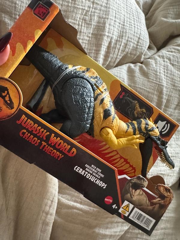 A great addition to any jurrasic world fans. A ceratosuchops from the new jurrasic world chaos theory series, which in our household we've already watched. First thing you notice is the look and colouring of the ceratosuchops. The dinosaur is a really good size, quite sturdy and feels well made. Fantastic quality. There is such great attention to detail;moveable joints, colour and realistic texture. The feet, tail, legs and arms all move too. Moving its tail side to side and up and down then makes it let out a massive roar, opening its mouth and moving its neck. You can also download the jurrasic world facts app to scan and watch your dinosaur come to life, see them up close, listen to their roars and learn fun facts. Absolutely love everything about this toy, the size, quality, sound, movement. There is nothing here that would disappoint. Would recommend for any dinosaur lover without hesitation.