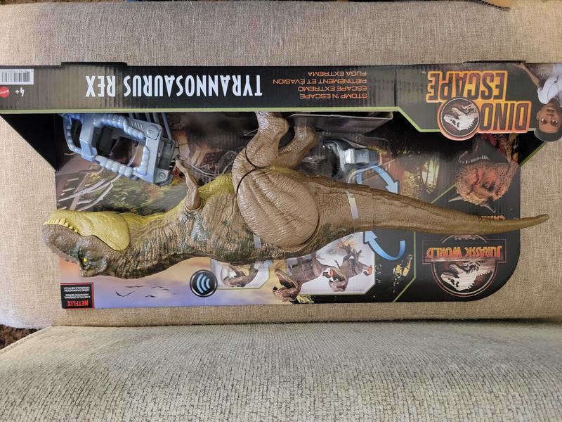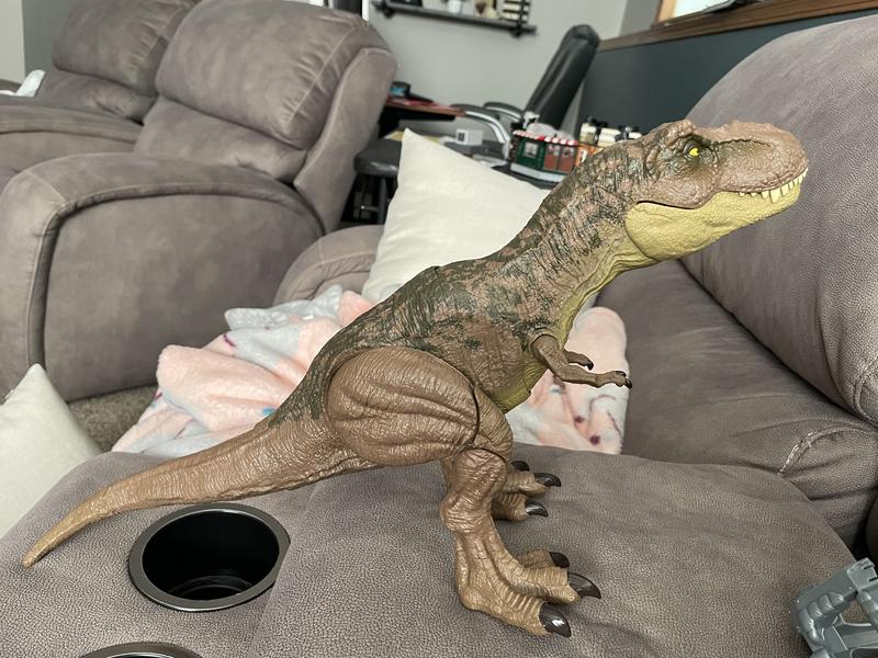 My kids love this T-Rex. He is loud! They figured out quickly how to get him to "burst out" of the cage the goes around his mouth. And it comes off with a big roar. They think he's the most "realistic" of the T-Rex's they own. Movements and sounds are right on. Copies the Jurassic World movies well. They've battled him with lots of other dinosaurs from this Mattel line, and he has shown no damage.