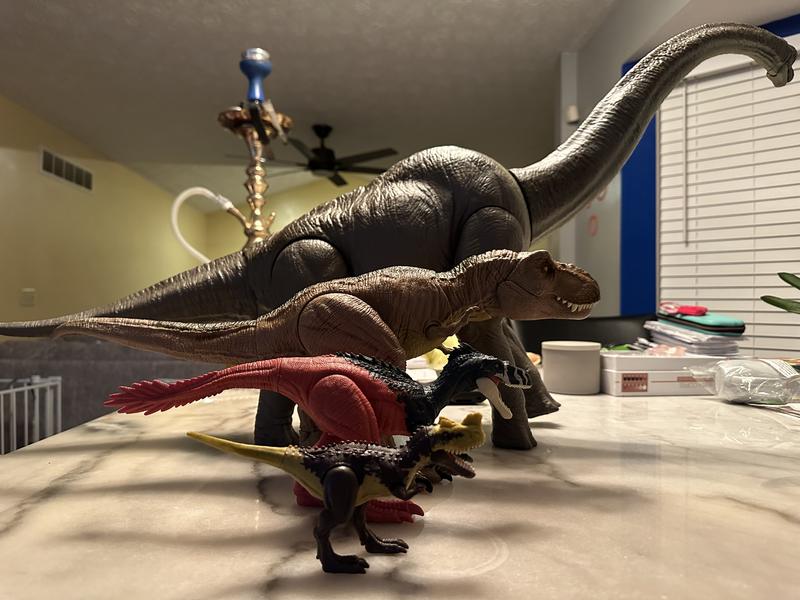 This is a good and necessary addition to the Jurassic World collection, but suffers from being less exciting and harder to pose than some of the others already introduced. My son was excited to open this and played with it straight away. There were issues getting it to stand the way it is meant to even when adjusting the tail, which makes it less fun to play with than some of the other dinos in the line. He used the related game that you can scan and play, but at age seven, he found it to simple to be fun. Despite its flaws, my son likes this dinosaur and continues to use it when he battles with his collection of figures.