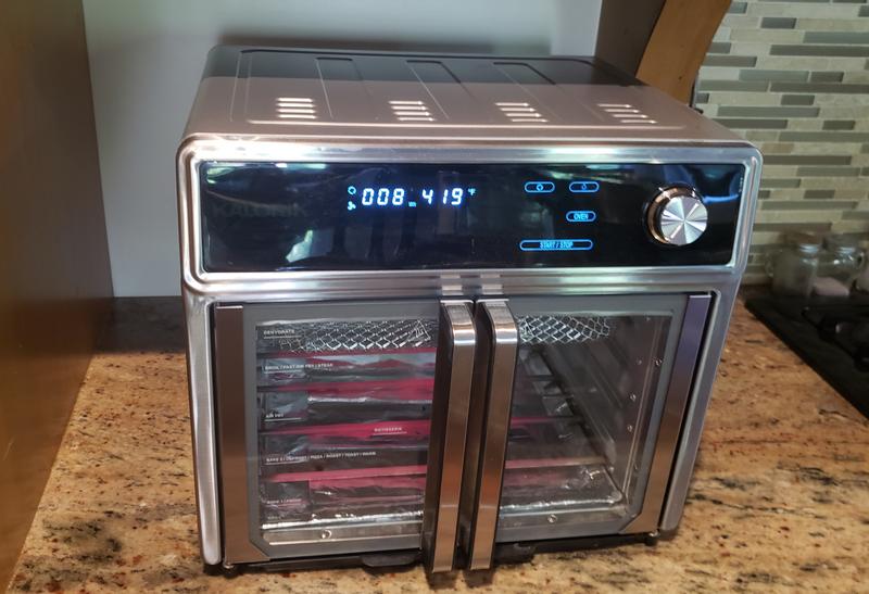 I have had 2 air fryers before this(a kalorik,worked well but wanted a bigger 1, then bought bigger 1 not a kalorik & it broke within a year. I have had it for over 3 years & I love everything about it. I have a family of 3 & it can feed a family & can cook a lot( ex. Family pack of chicken thighs/breasts). I originally bought an air fryer because my daughter has disabilities & is uncomfortable using the big oven. She find it like a pro & taught my husband how to use it! Cooks great once you get used to how much quicker it cooks than a regular oven. Less electricity, doesn't heat up your kitchen, easy to clean., etc... if you don't have one you are missing out on a great product, which to me is a necessity in my kitchen for everyone! I have never used it for baked goods(Leary that I won't time it right & usually need more room), Thanksgiving dinner(turkey too big, dehydrating, grilling or proofing(Never had desire to try). Funny thing was I bought this 1 for the rotisserie function & only used it 1x. I found it too much work tying the chicken on the spit & the one negative was that I found it difficult to get the spit in the right place, way too time consuming & found it frustrating. The.chicken was tasty but putting chicken on racks was just as good without the hassle. TIP: I put heavy duty aluminum foil on the crumb tray & it makes clean up even easier (I hardly ever have to clean the tray itself). In general it is pretty easy to clean,although the windows aren't spotless like I would like (but remember 3 years old & they don't look bad & can see in fine). Love how easy the French doors make it so you can get things out safely & easily! The warm feature is great for reheating food that don't taste good when reheating in microwave just put tin foil on it so it doesn't get too brown( things like French fries & burgers are better than reheating in microwave... Really). It is a worthwhile price as you are sure to love it,it will pay for itself in electricity & your house will be cooler in the summer because you won't be heating your kitchen up with the oven. Our family uses it constantly... Bk., snacks, lunch, dinner.