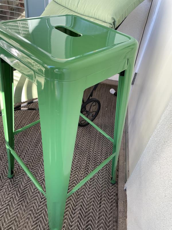 I really love the look and feel of these barstools. It has the prettiest color of green and a nice sturdy structure. It gave my bar the pop of color I wanted and it's pretty comfortable too. My family uses these more than the kitchen table.