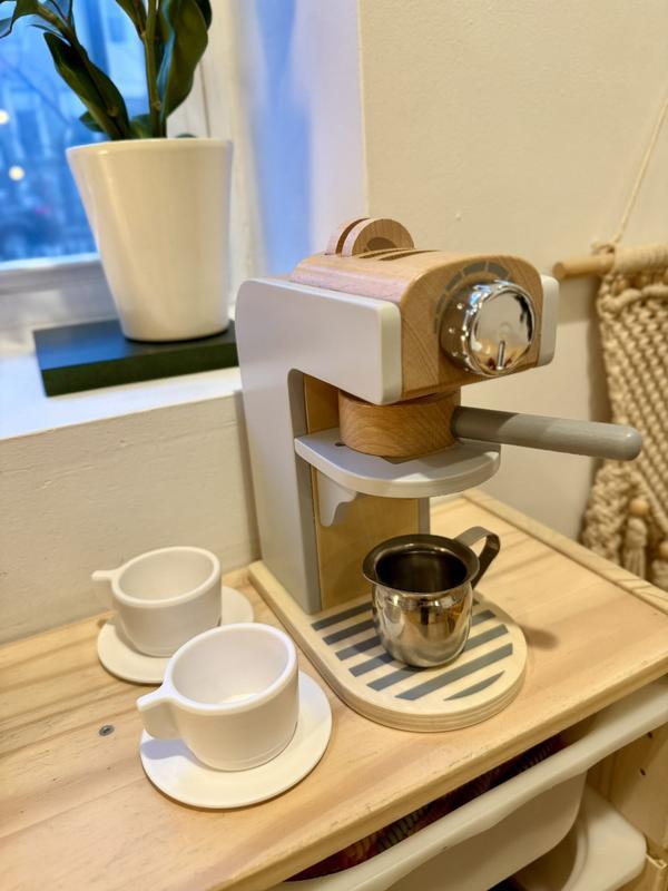 The children in my Reggio-inspired playschool LOVE this little coffee machine. It's given new life to the dramatic play area! They're opening coffee shops and taking orders! With the toaster and the blender, it's providing lovely connected, collaborative play! It's also sturdy and beautiful!