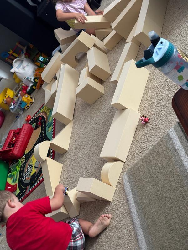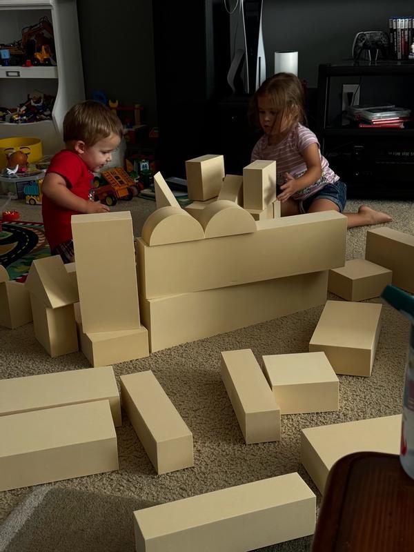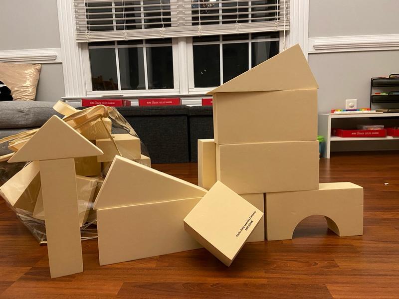 My son absolutely loves these foam blocks! They provide endless hours of fun and fit so well in my homes decor. They're nice abd soft so I'm not worried about my toddler getting hurt. These are an awesome toy!