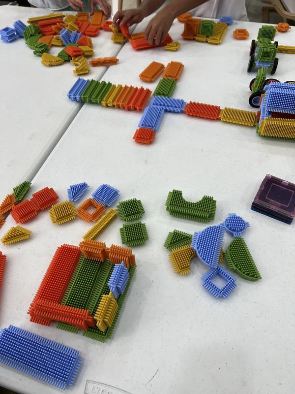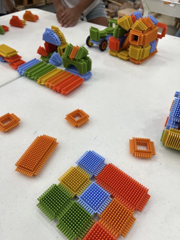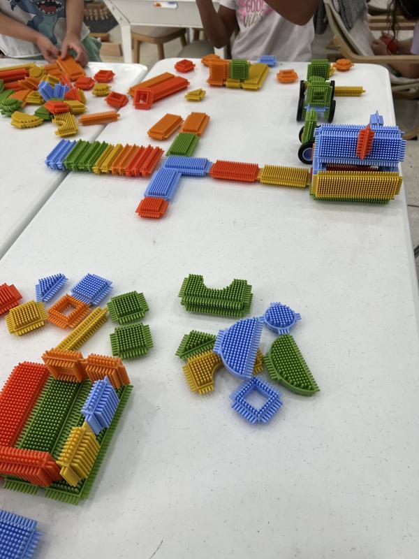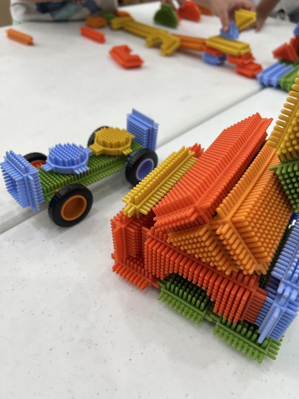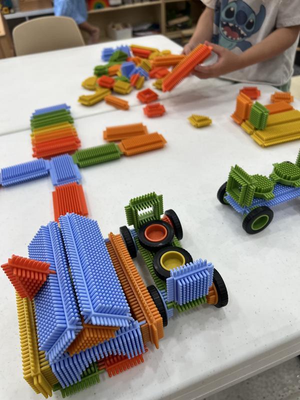 Encourage creative play, tactile exploration, and open-ended building using the Snap and Stack Thistle Block set. Plastic bristles fit together to create connections and construct anything children s imaginations can inspire! Develops size relationships and pattern building.