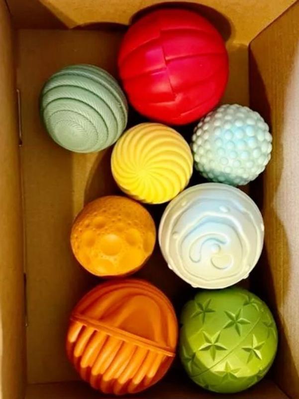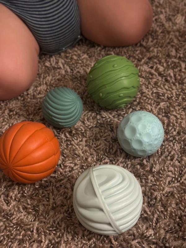 These textures mix and match balls are great. My son loves to mix and match them. They are AMAZING quality and super durable. The designs are so pretty. Good size for little hands and good to learn textures.