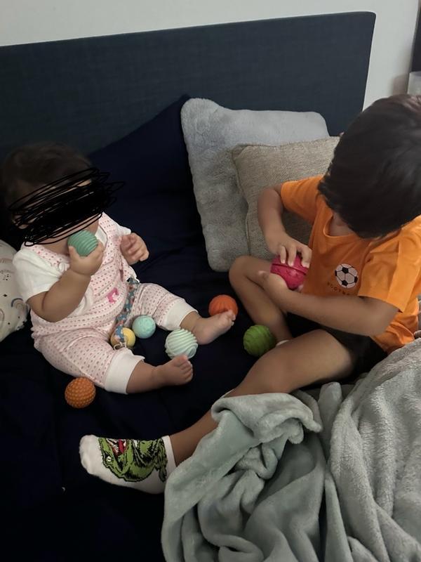 My kids absolutely love the Textured Mix and Match Balls! All three of them—my 4-year-old, 2-year-old, and even my 4-month-old—enjoy playing with this set. It’s perfect for sensory exploration, and the different textures keep them all engaged. I love that these balls are designed with safety in mind—they’re durable, well-sized for little hands, and don’t have any small pieces that could be a choking hazard. I’ve noticed how they help strengthen their fine motor skills as they screw the pieces together, and they have so much fun mixing and matching the colors. Plus, they’re super easy to clean. This is a fantastic toy for early sensory and cognitive development, and it’s great for multiple ages!