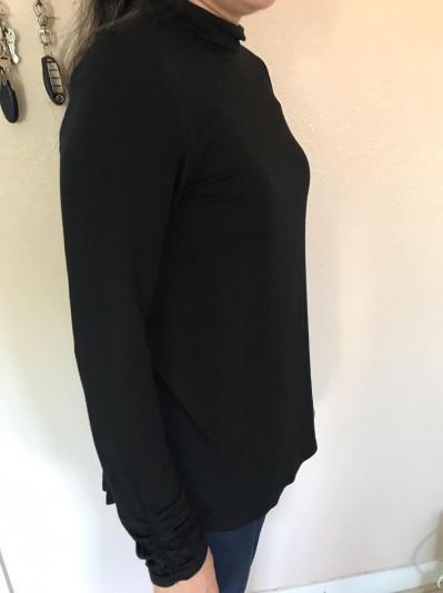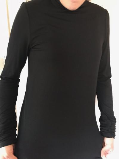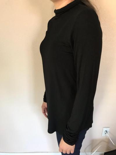 When I was searching macys.com for a black turtleneck I didn't realize how difficult it would be to find something that I wanted. Then I ran across this Karen Kane turtleneck and although a bit pricey, I decided to take the chance. I love it! it's long, soft and the sleeves are ruched at the bottom, which makes it different. I love it and the black color is perfect!
