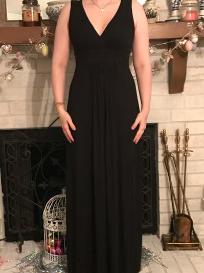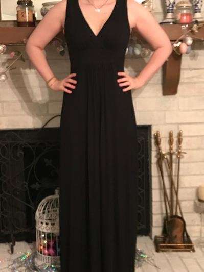 HIgh quality--falls beautifully. There are MANY cheaper versions of this dress out there, but none drape as beautifully as this one. This dress is good for all body types.