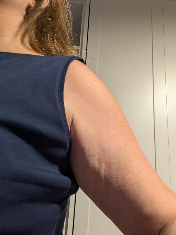 The armholes of these and really most shells these days are rather deep making those of us with generous underarm fat look unsightly the bra under the arm shoes. You can’t tell from the models on the pictures provided.
