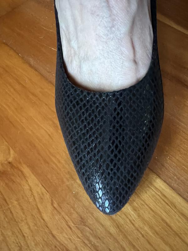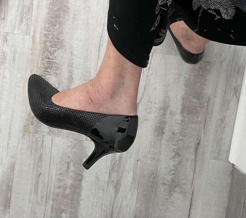 I bought these pumps for an interview and am so glad I did. They are the most comfortable pumps I have ever worn. My foot size is 6.5 with an average foot width, but I bought them in size 7, and they fit perfectly without any "break-in" period. I wish they had black leather in my size, as I would have preferred that over the formal patent Croc.