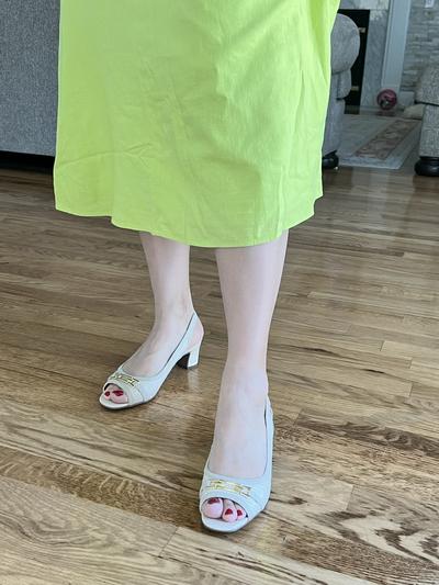 Even the leather is not that soft but it's very comfortable, and the color beautiful for summer special events , shiny smooth leather and I liked how did they covered the front edge that attached to my toe. I liked the height too not too high heel so it's very nice for a long time wearing it. You could wearing it with dress, skirt, or even dressy pants.