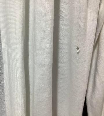 This cardigan was ordered on line and arrived with a hole in the front side. It was a gift for my daughter's birthday. I wrote to Macys advising them, but to date have not received the courtesy of a response.
